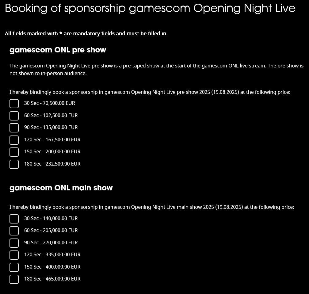 “We are doing something wrong. Look at all the money there!” – exclaimed my friend, sharing a picture with a price list for Gamescom Opening Night Live sponsorships.