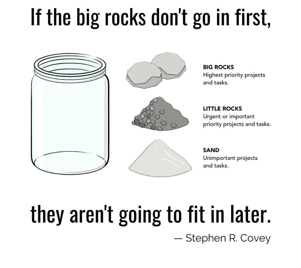 I think it also makes sense to pick a single “source of truth” – a place (an app?) that will be the #1 go-to for alignment on tasks. In my current workplace, that is Asana: “if it’s not in Asana, it won’t be done”. The flood of tasks or just messages from every direction is distracting and makes prioritization way harder.